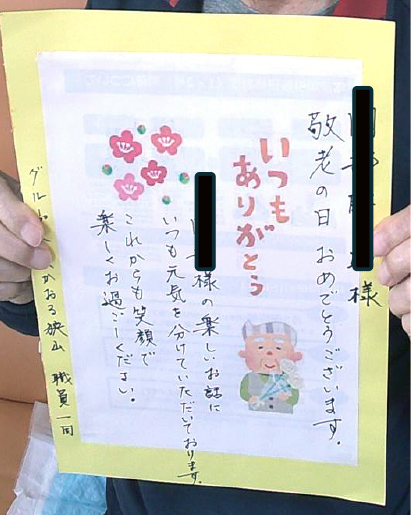 9月15日、施設内で敬老会を開催いたしました。日頃の感謝の気持ちを込めて、皆さまに少し特別なお食事をご用意し、和やかなひとときを過ごしていただきました。