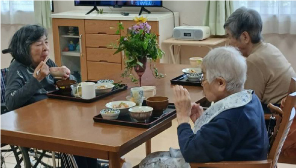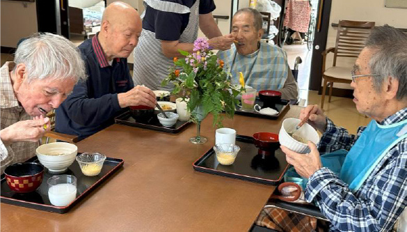 食事中は、笑顔や会話が自然と広がり、スタッフも一緒に温かい時間を共有させていただきました。「美味しいね」といった声があちこちから聞こえ、私たちにとっても心に残る一日となりました。