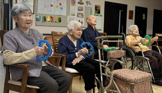 懐かしい歌を口ずさみながら、タンバリンやベルを手に取り、音に合わせて叩いたり振ったり皆さんの笑顔とリズムが響き合う、心温まるひとときです。